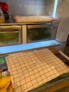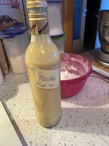 Wenn dir beim Backen Eiklar übrig bleibt, sammle es in einem Behälter und beschrifte diesen. Eiklar hält sich im Kühlschrank einige Tage, du kannst es sogar einfrieren. Wichtig ist nur: immer mitschreiben und updaten wie viele Eiklare du gesammelt hast. Anschließend verwertest du diese in einem „Eiklarverwertungskuchen“ oder „Eiklarverwertungskekserl“.