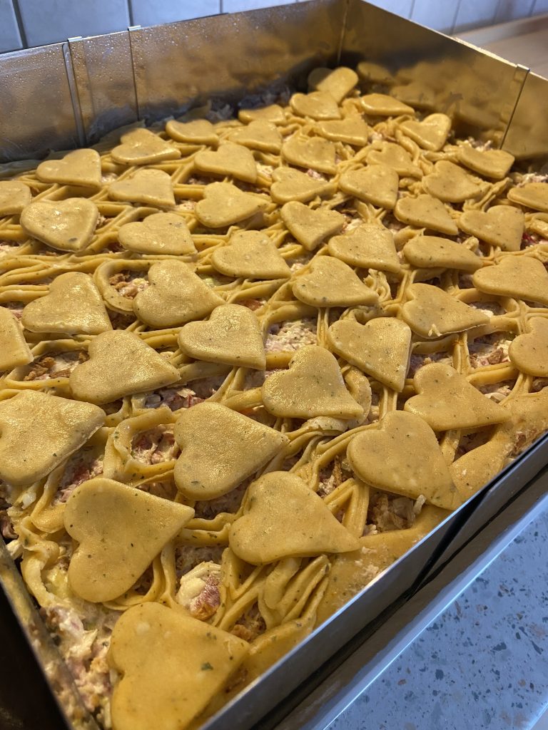 600g glattes Mehl, 300g Butter, 100g geriebener Käse, 200ml Schlagobers,